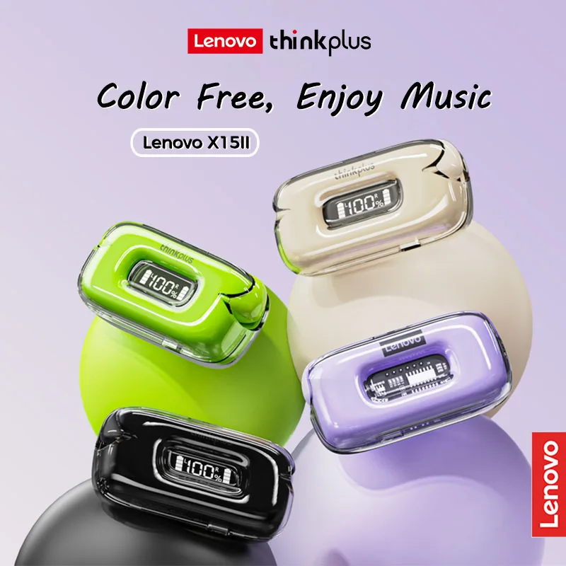 אוזניות Lenovo מקוריות –  X15II Bluetooth 5.3 –  TWS  עם מיקרופון הפחתת רעשים, עמידות למים