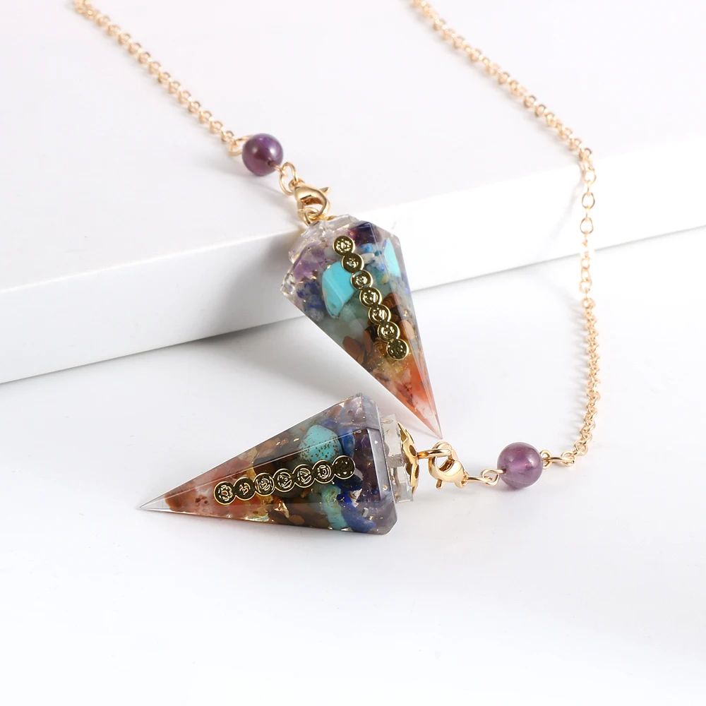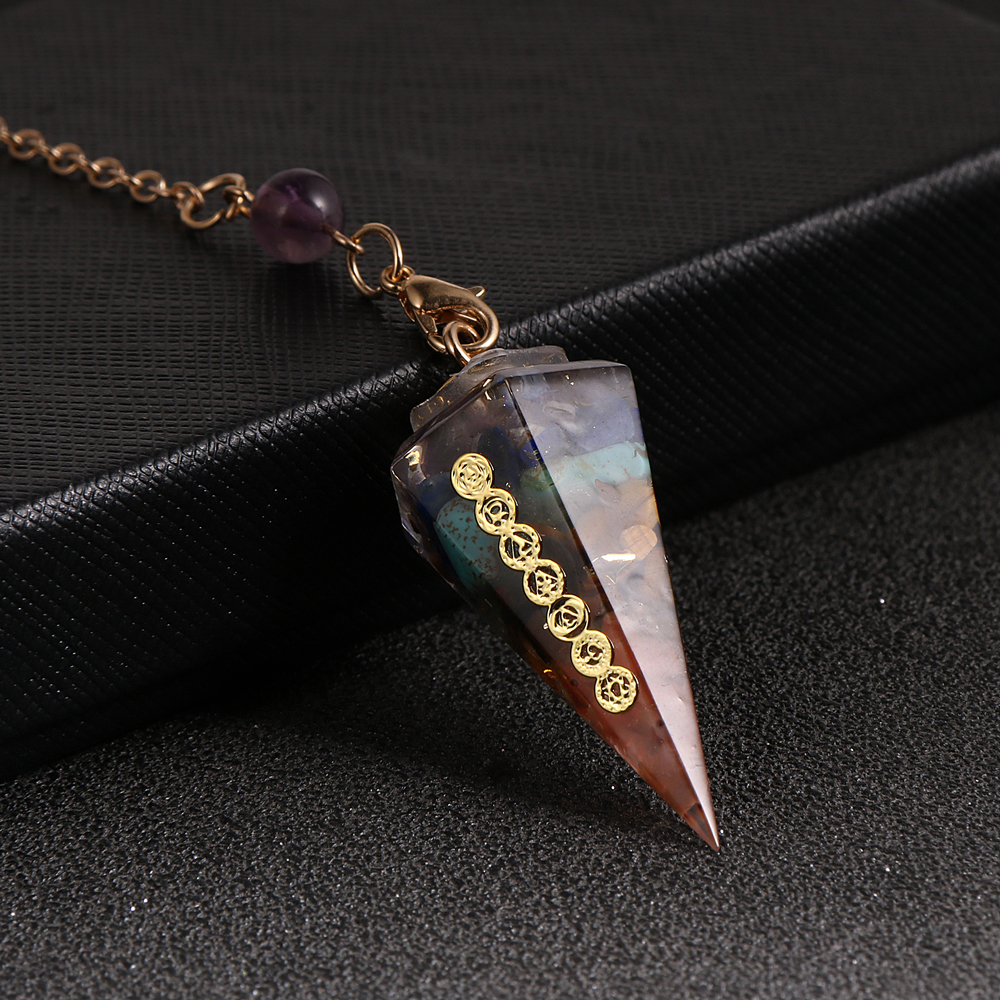 אורגונייט שרשרת אנרגטית עם תליון אנרגטי 7 הצאקרות פריט: תליון מטוטלת Orgonite רייקי ואנרגיית 7 צ 'אקרות