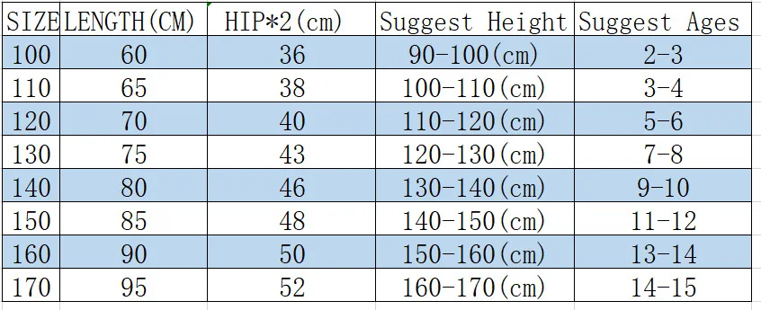 לגובה 130-140 ס"מ, נא לבחור מידה 140