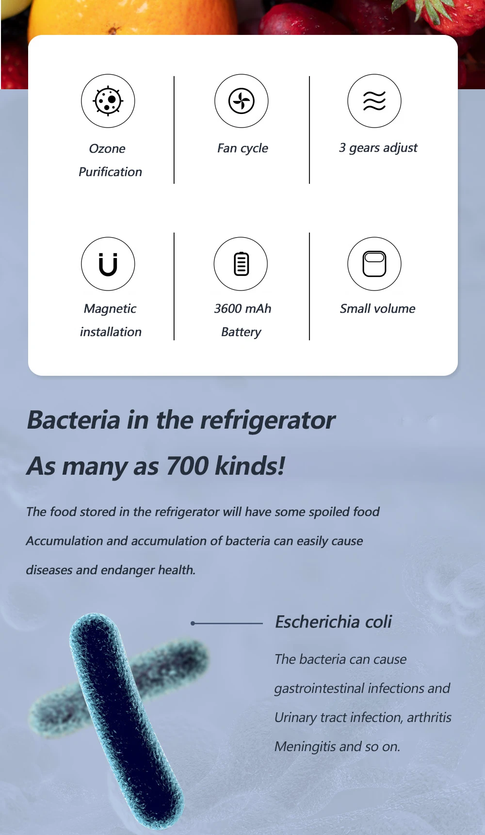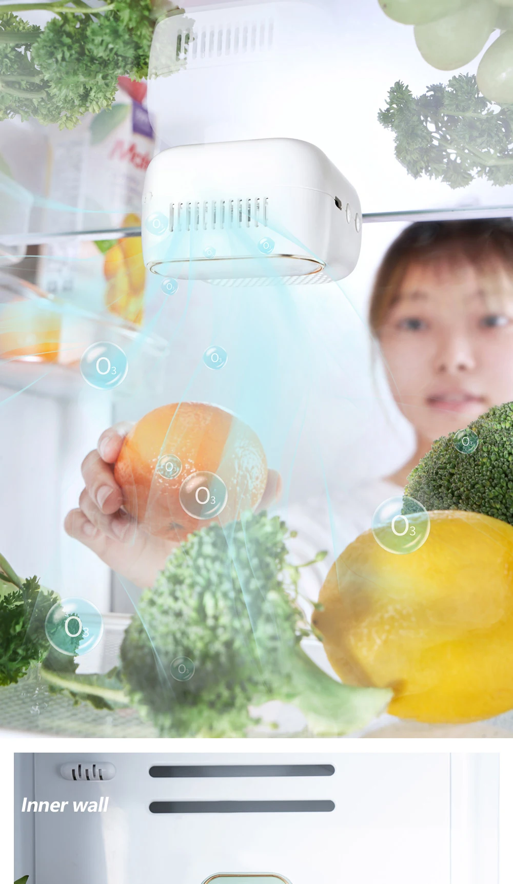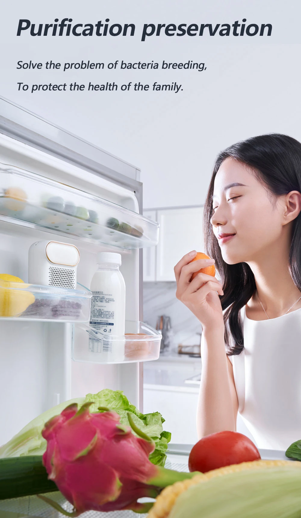 מטהר אוזון אוויר שיאומי LOFANS למקרר מנקה את המקרר מריחות ומחטא מחומרים מזיקים מסייע בשמירה על המזון מכשיר מהפכני קל לתפעול